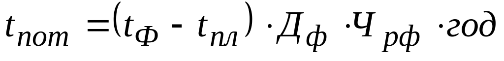 Якщо фактично одним робітником відпрацьовано менше днів і годин, чим передбачалося планом, то можна визначити надпланові втрати робочого часу: цілоднівні (Дпот) і внутрізмінні (tпот):