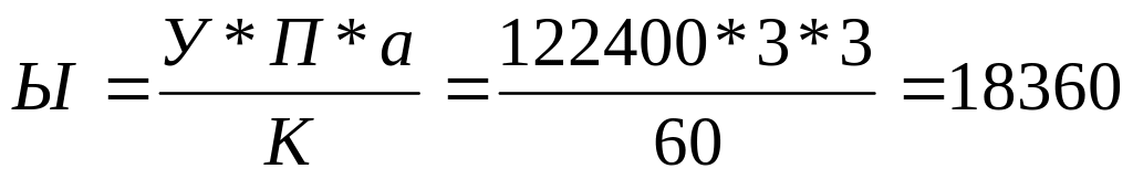 Мұндағы У – бір сменаның жылғы уақыт қоры, П- сменалар саны, а – ағынды сызықтың саны, К – бұйымның жылғы көлемі.