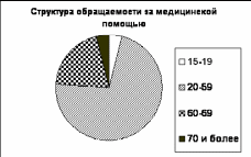 Представить структуру обращаемости за медицинской помощью по возрастным группам в виде секторной диаграммы (рассчитанные показатели задания №2 варианта 1).
