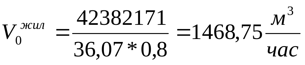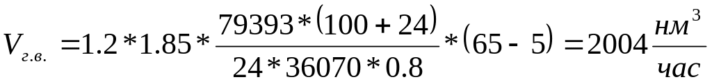 Расчетный расход газа на вентиляцию общественных и коммунально-бытовых предприятий определяется по максимальному часовому расходу тепла на эти нужды, по следующей зависимости: