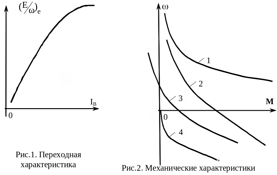 В электрических машинах с последовательным соединением обмоток якоря и возбуждения ток якоря IЯ является одновременно и током возбуждения IВ. Так как магнитный поток Ф нелинейно зависит от IВ, то уравнение механической характеристики = f (М), выражение которой для всех двигателей постоянного тока имеет вид:
