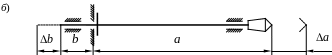 Рис.2.11. Температурные деформации шпинделя при различном расположении осевой опоры: а – у переднего конца шпинделя; б – у заднего конца шпинделя