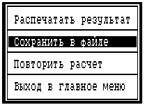На рис. 3.3 представлено меню с вариантами дальнейших действий после получения результата расчета.