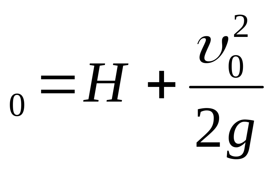 Н – заглубление центра тяжести отверстия под горизонтом жидкости в сосуде (пьезометрический напор).