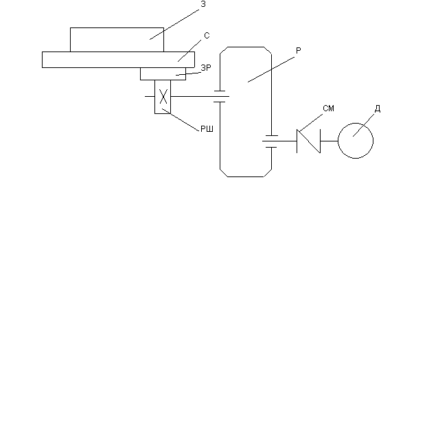 З – заготовка; С – стол; ЗР – зубчатая рейка; РШ – речная шестерня; Р – редуктор; СМ – соединительная муфта; Д – двигатель