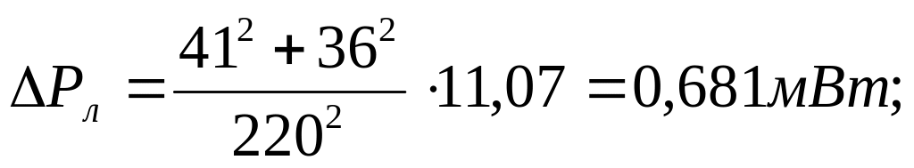 ∆W = ∆Р ∙ τ , где τ – время потерь( 4500 час/год );