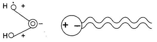 Рис.1. Молекула воды (слева) и молекула фосфолипида (справа), состоящая из полярной головы и неполярного хвоста. Головы гидрофильны, хвосты гидрофобны
