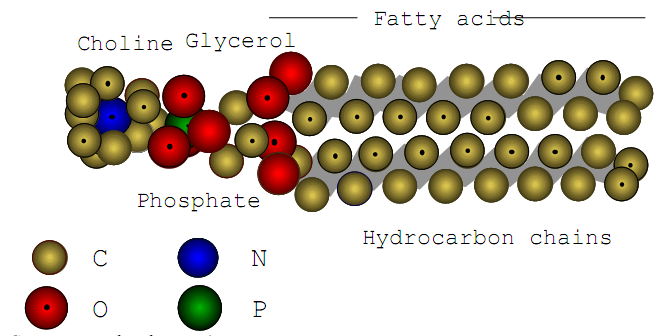 Липидные бислои образуются амфифильными молекулами фосфолипидов и сфингомиелина в водной фазе. Амфифильными эти молекулы называют потому, что они состоят из двух частей, различных по своей растворимости в воде: полярной головы обладающей высоким сродством к воде, т. е. гидрофильной, и хвоста, образуемого неполярными углеводородными цепями жирных кислот; эта часть молекулы обладает низким сродством к воде, т. е. гидрофобна.