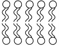 Именно такое строение молекулы и приводит к тому, что в водных растворах фосфолипидные молекулы самособираются в бислойную мембрану. В мембране "жирные хвосты" упрятаны внутрь, а снаружи в контакте с водным окружением оказываются полярные "головы" этих молекул.