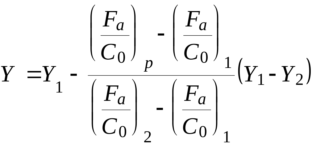 Если отношения Fa/C0 меньше минимального в таблице, принимается e=0,22 и Y=2,0. При отношении большем максимального указанные подшипники не применяются.