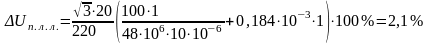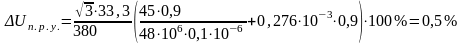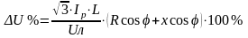 Падение напряжения определяется по формуле: