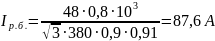 I р.г.= 200 · 103 / · 400 · 0,8 = 360 А.