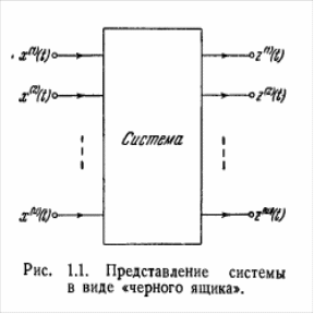 поведение данной системы, которые интересуют исследователя; C) промежуточные переменные—те величины, которые не являются ни входными, ни выходными переменными. Схематично система может быть изображена «черным ящиком» с конечным числом внешних полюсов, доступных для исследователя. Входные полюсы соответствуют входным переменным и снабжаются стрелками, направленными внутрь ящика. Выходные полюсы соответствуют выходным переменным и снабжены стрелками, направленными от ящика. Предполагается, что промежуточные переменные, не представляющие непосредственного интереса, сосредоточены внутри ящика. Входные и выходные переменные и ящик, не имеют какого-либо физического смысла, они просто служат для наглядного представления тех переменных системы, которые имеют отношение к решению данной задачи. Рис. 1.1 иллюстрирует представление системы в виде черного ящика в том случае, когда она имеет и входных и ώ выходных переменных, причем предполагается, что все переменные зависят от времени. Символ х(i) (t), i = 1,2,… и, обозначает входные переменные, а символ z(j)(t), j = 1,2,…, ώ0, — выходные переменные.