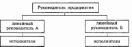 Как видно из рисунка 1, при линейном управлении каждое звено и каждый подчиненный имеют одного руководителя, через которого по одному каналу проходят все команды управления. В этом случае управленческие звенья несут ответственность" за результаты всей деятельности управляемых ими объектов. Речь идет о пообъектном выделении руководителей, каждый из которых выполняет все виды работ и принимает решения, связанные с управлением данным объектом. Поскольку в линейной структуре управления решения передаются по цепочке "сверху вниз", а сам руководитель нижнего звена управления подчинен руководителю более высокого уровня, формируется своего рода иерархия руководителей конкретной организации. В данном случае действует принцип единоначалия, суть которого состоит в том, что подчиненные выполняют распоряжения только одного руководителя. Вышестоящий орган управления не имеет права отдавать распоряжения каким-либо исполнителям, минуя их непосредственного начальника.