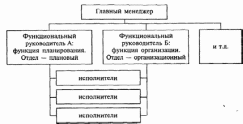 В данном случае функциональные структуры подразделения находятся в подчинении главного линейного руководителя. Свои решения они проводят в жизнь либо через главного руководителя, либо (в пределах своих полномочий) непосредственно через соответствующих руководителей служб-исполнителей.