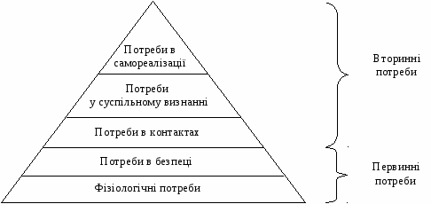 Первинні – це потреби, які виникають із народженням, без задоволення яких людина взагалі не може нормально функціонувати. До таких потреб можна віднести потреби фізіологічні та потреби в захисті.