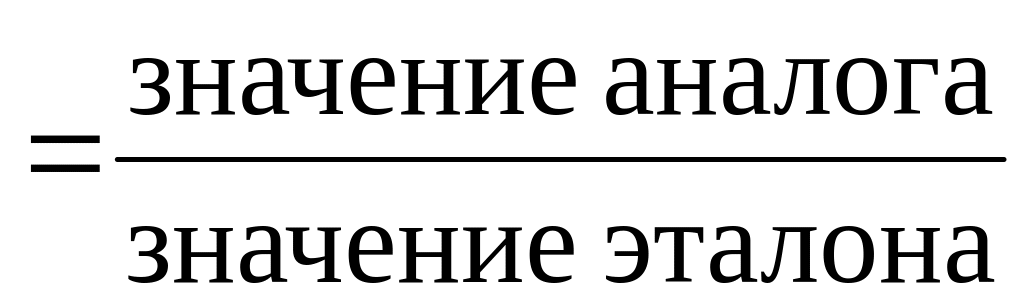 В столбцах в дальнейшем записывается в числителе - численное значение параметров аналога, а в знаменателе - коэффициент уровня аналога по данному параметру.
