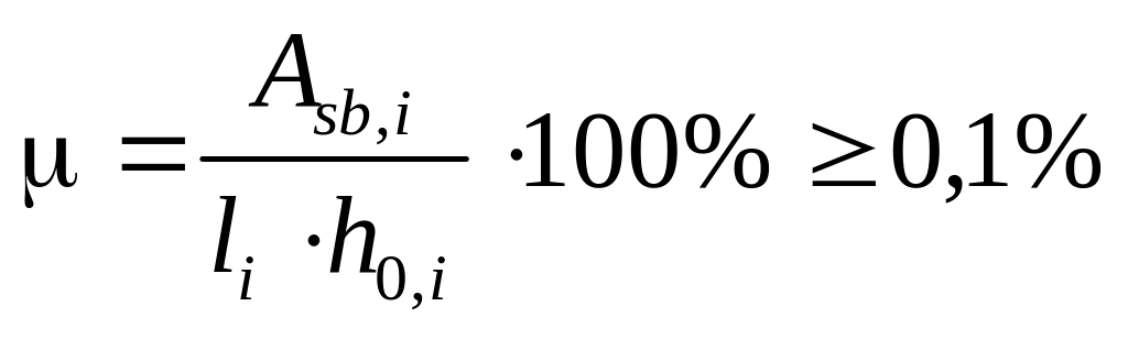 Процент армирования в каждом расчётном сечении фундамента должен быть не менее минимально допустимого: