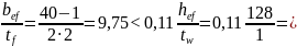где β – коэффициент, принимаемый по табл. 22 ; hef – расчётная высота стенки составной балки, для сварных балок hef = hw.
