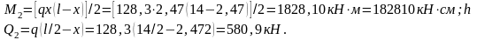 Проверяем отсек «а». Определяем средние значения M и Q в сечении на расстоянии