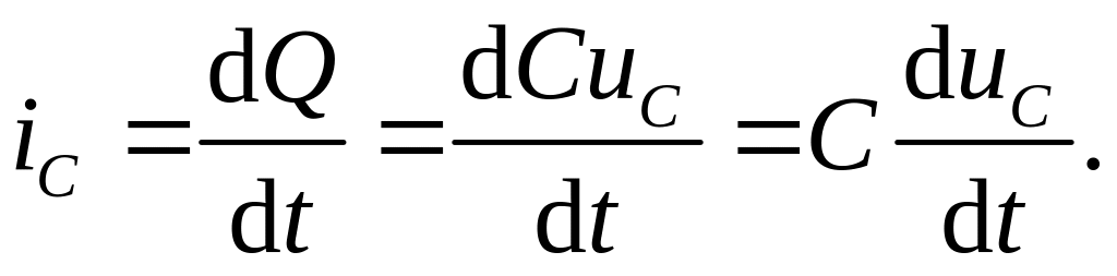 Емкость представляет собой элемент электрической цепи, способный накапливать электрический заряд Q. При этом соотношение между величиной заряда и напряжением uC на емкости имеет вид