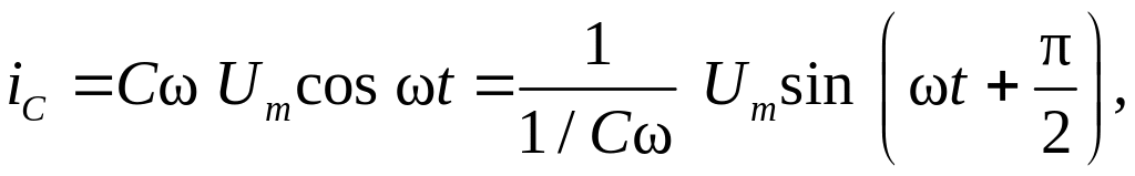Для гармонического напряжения uС =Um sin ωt, тогда получим