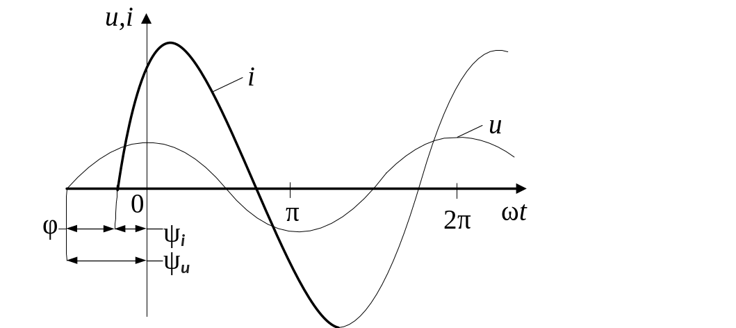 i=Im sin (ωt − φ) ; u=Um sin ωt .