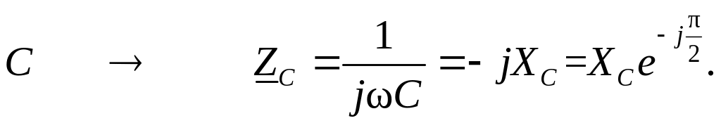 При переходе в комплексную область элементы электрической цепи заменяются на соответствующие комплексные сопротивления: