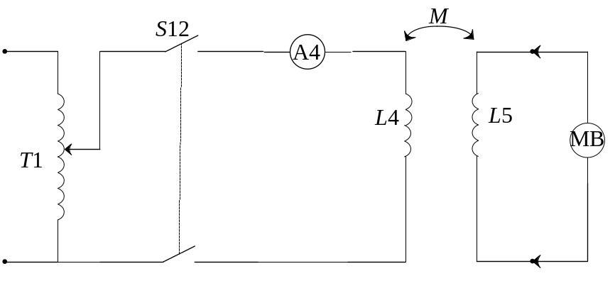 Рис. 4.13. Схема последовательного соединения катушек: