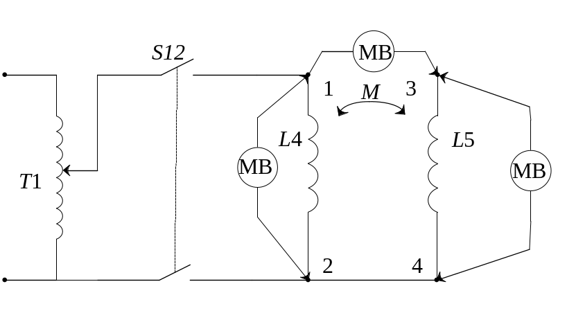 Для определенности зажимам катушек L4 и L5 присвоены номера: 1,3 − верхние и 2,4 − нижние зажимы (рис. 4.11).