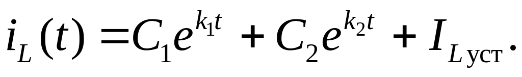 Общее решение берется из табл. 6.1 в соответствии с видом корней характеристического уравнения. Частное решение iч представляет собой установившееся значение тока в индуктивности: iч= ILуст.