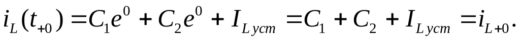 Осталось найти постоянную С. Она находится из начального условия, т.е. по значению переменной iL(t) (тока в индуктивности) при t= t+0=0. Полагая известным начальное значение тока iL(t+0)= iL+0, и подставляя его в выражение (6.9), получим