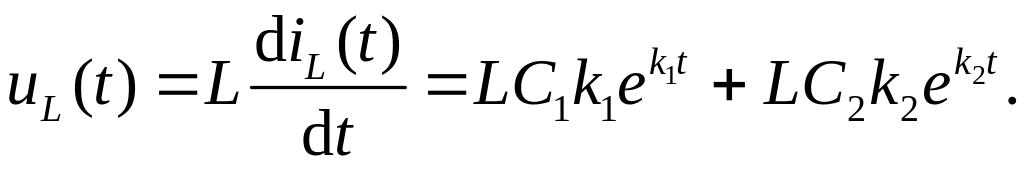 Напряжение на индуктивности в переходном режиме (промежуточные преобразования опускаем)