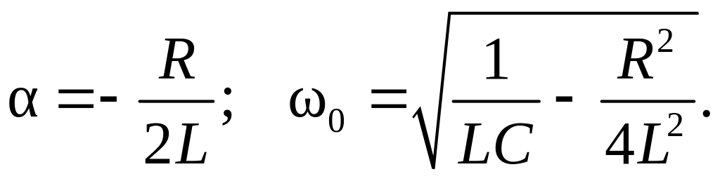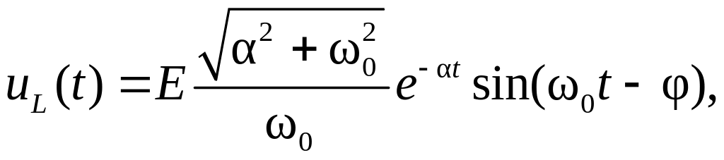 По гармоническому закону с теми же параметрами (α и ω0) также изменяются и падения напряжения на элементах цепи.