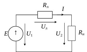 В соответствии с законом сохранения энергии эта мощность равна мощности PЛ, выделяющейся в сопротивлении линии RН ,