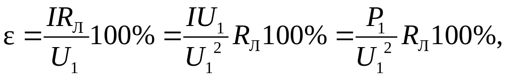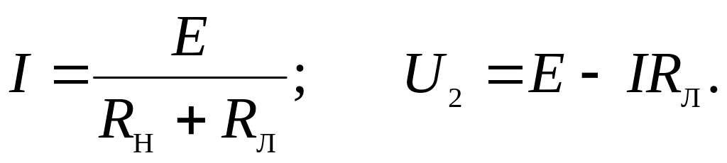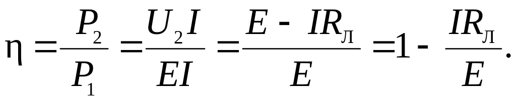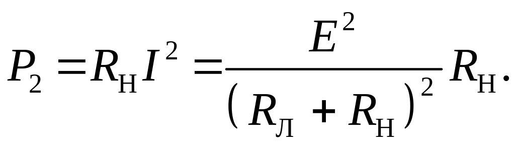 На основании закона Джоуля-Ленца мощность, отдаваемая источником во внешнюю цепь, равна P1 =EI, а мощность, выделяющаяся в активных сопротивлениях, P = R I2. Для цепи рис.1.6 R=Rл + Rн.
