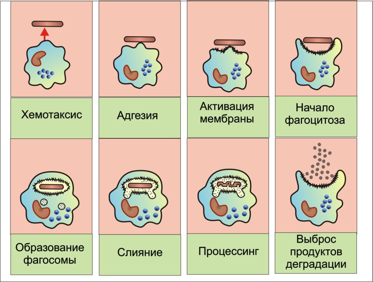 Уничтожение антигена фагоцитами можно разделить на несколько стадий: