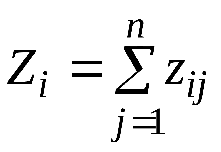 Для кожного району визначається сума отриманих значень zij за формулою: