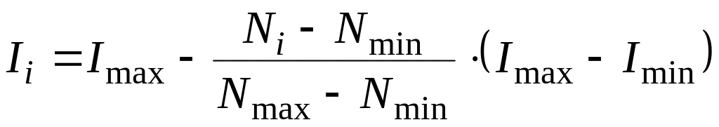 Інтервал руху транспортних засобів визначається числом мешканців району. Мінімальний інтервал I = 2 хв, максимальний - 10 хв. Мінімальний інтервал руху приймається для району з максимальною чисельністю населення Nmax, максимальний - для району з мінімальною чисельністю Nmin. Для інших районів інтервал визначається за допомогою лінійної інтерполяції: