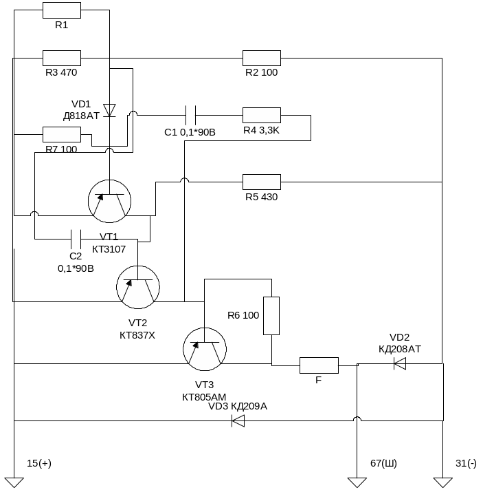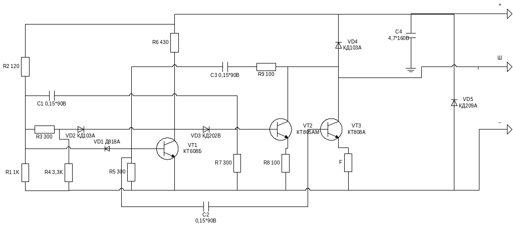 2. Зарисовать схему испытуемого электронного устройства согласно заданного преподавателем варианта (рисунок 2, 3, 4, 5).