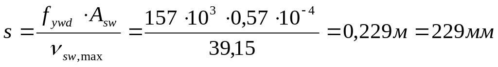 Диаметр поперечных стержней принимаем как и для левого приопорного участка =6 мм, Asw=0,57 см2; тогда шаг поперечных стержней: