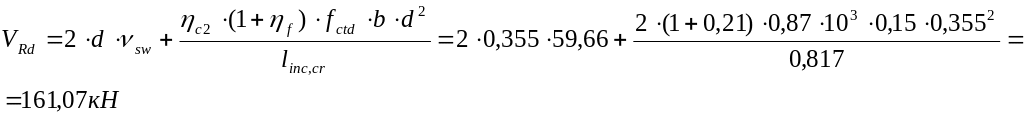 Наибольшая поперечная сила на участке Vsd,2=V2,l=0,6·q·lsb=0,6·44,78·5,7=153,15 кН;