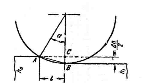 2.2 Сурет. Жанасу ұзындығын l анықтау (қарпу доғасының бойлық проекциясын)