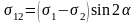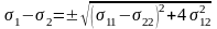 Басты кернеулерді (σ1 және σ2) еркін координатты осьтердегі кернеулер σ11, σ22 және σ12 арқылы анықтайтын теңдеулерді шығарайық.