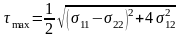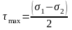Осы теңдеу бойынша ең үлкен жанама кернеу басты нормальды кернеулердің жартылай айырмасына тең.