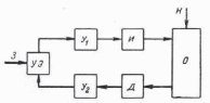 Барлықавтоматтыбасқаружүйелерінекітопқабӛлугеболады:қарапайым(обыкновенный)жәнекибернетикалық.Егерструктуралыққұрамыменқызмететуережесіжұмысүстіндеӛзгермесеондайавтоматтыжүйеніқарапайымдепатайды.Бұлжүйеқойылғанмақсатқасайберілгенжұмыстыӛндірісталабынасәйкесіскеасырады.Егержұмысрежимдеріӛзгерсе,бұндайавтоматтыжүйелержұмысістеуқабілетінжоғалтады,немесебұлжүйеніжаңаданқұрастырукерекболады.Кибернетикалықдеп,қандайқиынжағдайдадаболмасын,ӛндірістіңоптималрежимінтауып,немесеоныіздестіріпжұмысатқаратынавтоматтыжүйелердіайтады.АБЖекігебӛлінеді:ажыратылғаннемесетұйықталмағанжәнетұйықталған.АжыратылғанАБЖдепсыртқыкерібайланысыжоқжүйеніайтады.Бұлжүйеекігебӛлінеді:1-нақтыпрограммалы:2-қоздырушыәсерліжүйе.АжыратылғанАБЖнақтыпрограммалы1-10асуреттекӛрсетілген.Мұнда0-басқарылушыобъект;Н-жүктеме;И-орындаушыэлемент;У-күшейткішУЭ-басқарушыэлемент;3-нақтытапсырыс.БасқарушыэлементкеУЭнақтытапсырыс3беріледі.БұлсигналкүшейткішУарқылыорындаушыорганИ-гежетеді,алолбасқарылушыобъект0-ғаәсеретеді.Сӛйтіпбасқарушыэлеметтенәсеробъектігежетеді.Бұлжүйедекіріспеншығысшамаларысалыстырылмайды.Ӛйткенікерібайланысжоқ.АжыратылғанАБЖ-ғақоздырушыәсерететінсұлба1.10бкӛрсетілген.БұлжүйеИН,күшейткішУэ