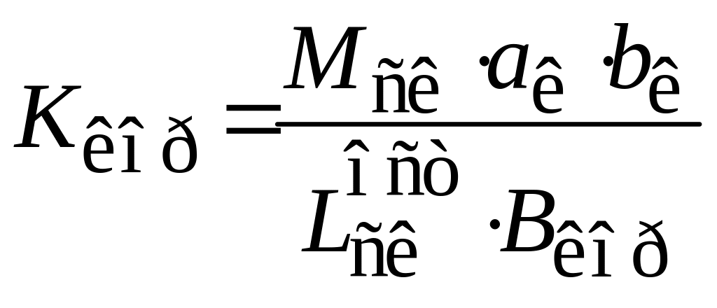 Коефіцієнт використання корисної площі складу визначається за формулою
