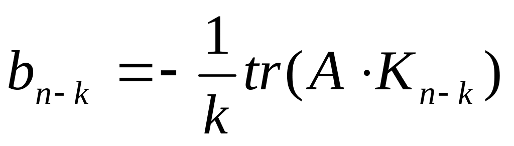 Як бачимо, одержані коефіцієнти характеристичного рівняння матриці співпадають з коефіцієнтами, одержаними іншими методами.
