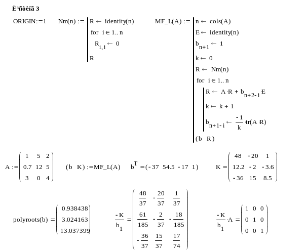 На лістингу 3 наведено програму реалізації методу Фадєєва-Левер’є за допомогою Mathcad
