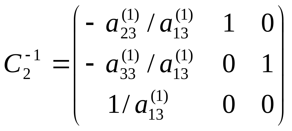 Для матриці 3-го порядку, на першому кроці матриця А множиться справа на матрицю вигляду